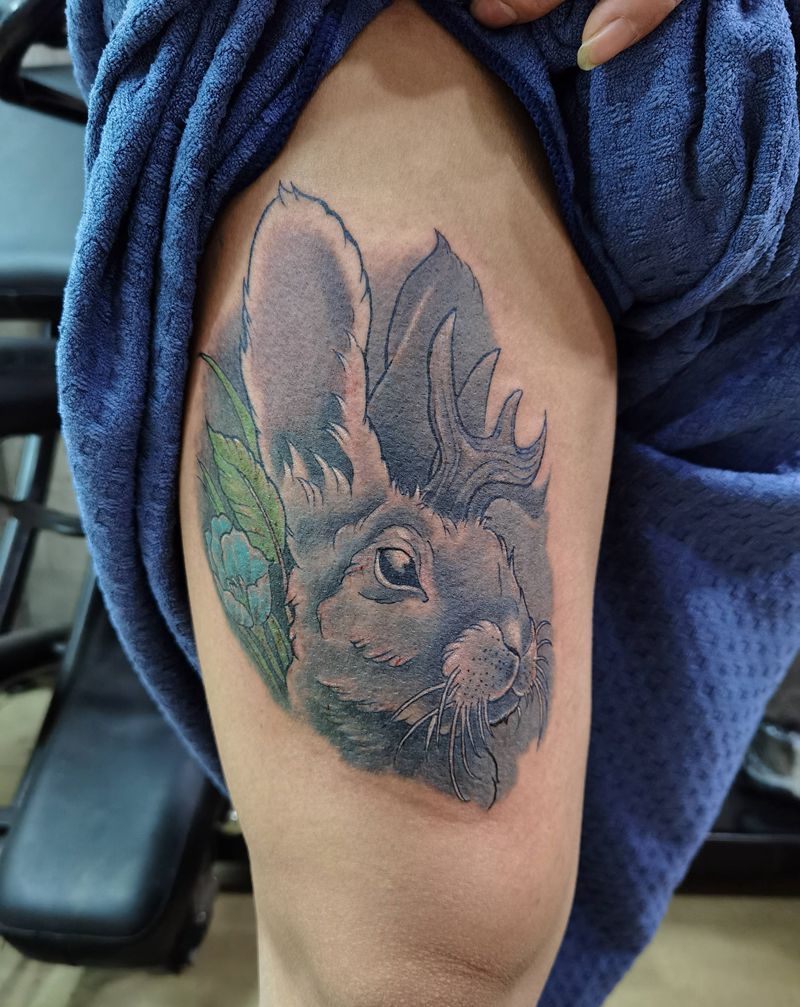 当前位置: 首页 >广东省佛山市纹身店-九龍纹身纹身图案>兔子纹身图片_腿部纹身图案