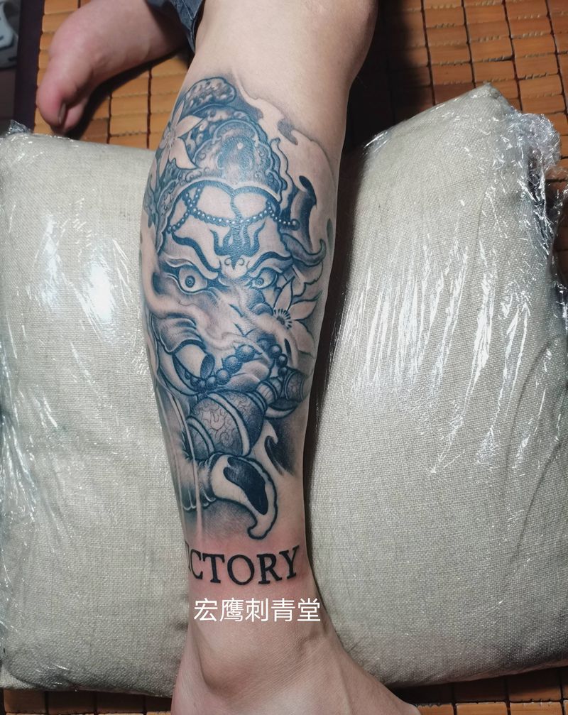 当前位置: 首页 >广东省佛山市纹身店-宏鹰刺青堂纹身图案>象神纹身图片_脚部腿部新传统老传统纹身图案