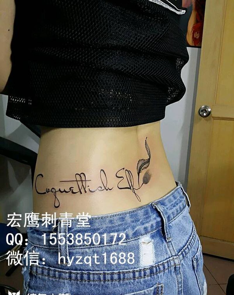 • T关于私处得爱!纹身图片_成品腹部清新字符图腾纹身图案