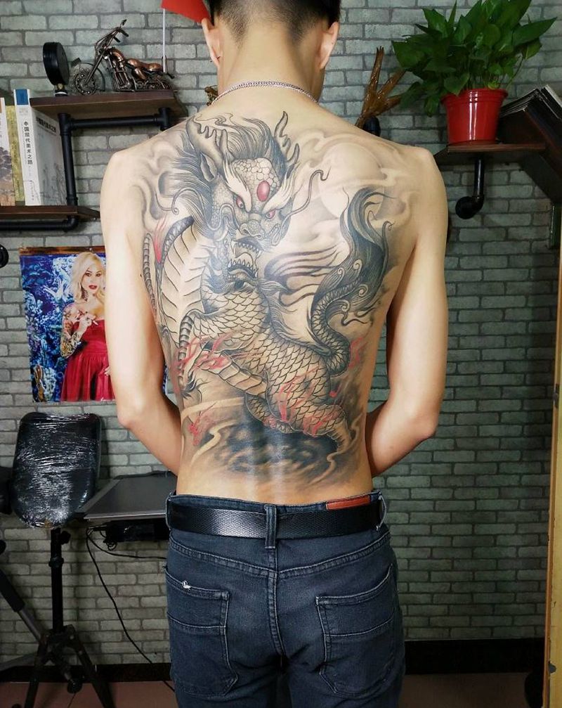 • T云龙九郎纹身图片_背部老传统云龙九郎纹身图案