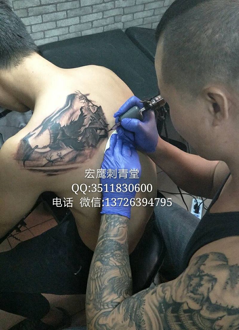 黑灰满背纹身图案