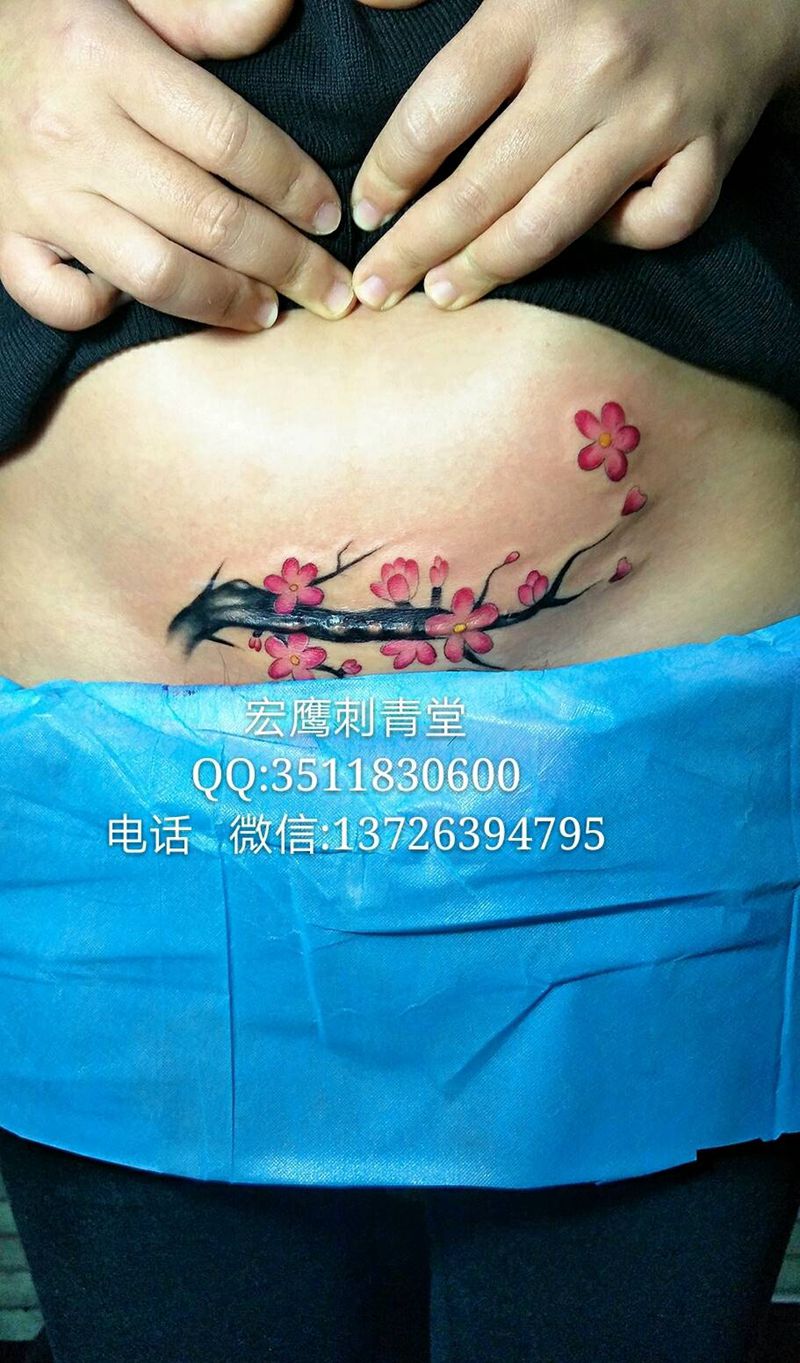 当前位置: 首页 >广东省佛山市纹身店-宏鹰刺青堂纹身图案>梅花遮盖剖腹产疤痕纹身图片