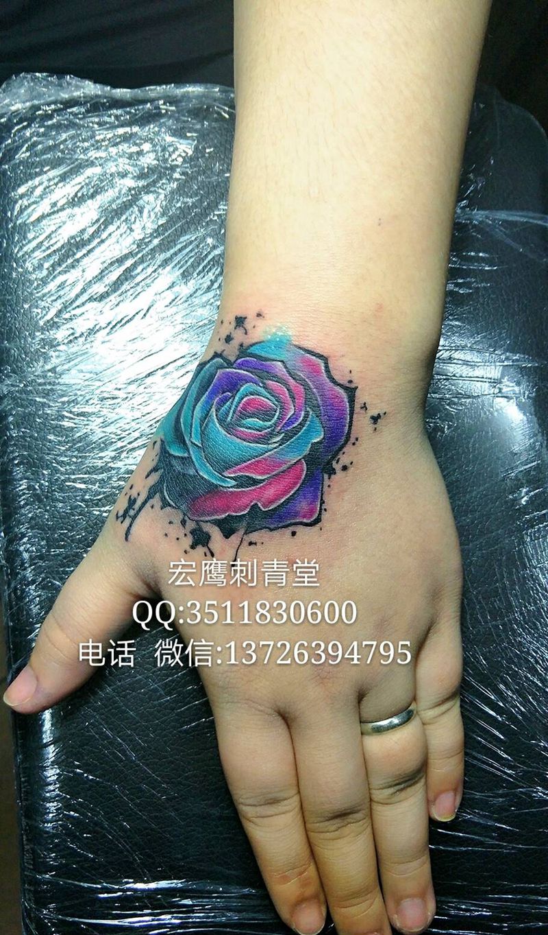 • 手背潮流时尚的玫瑰花眼睛纹身图案