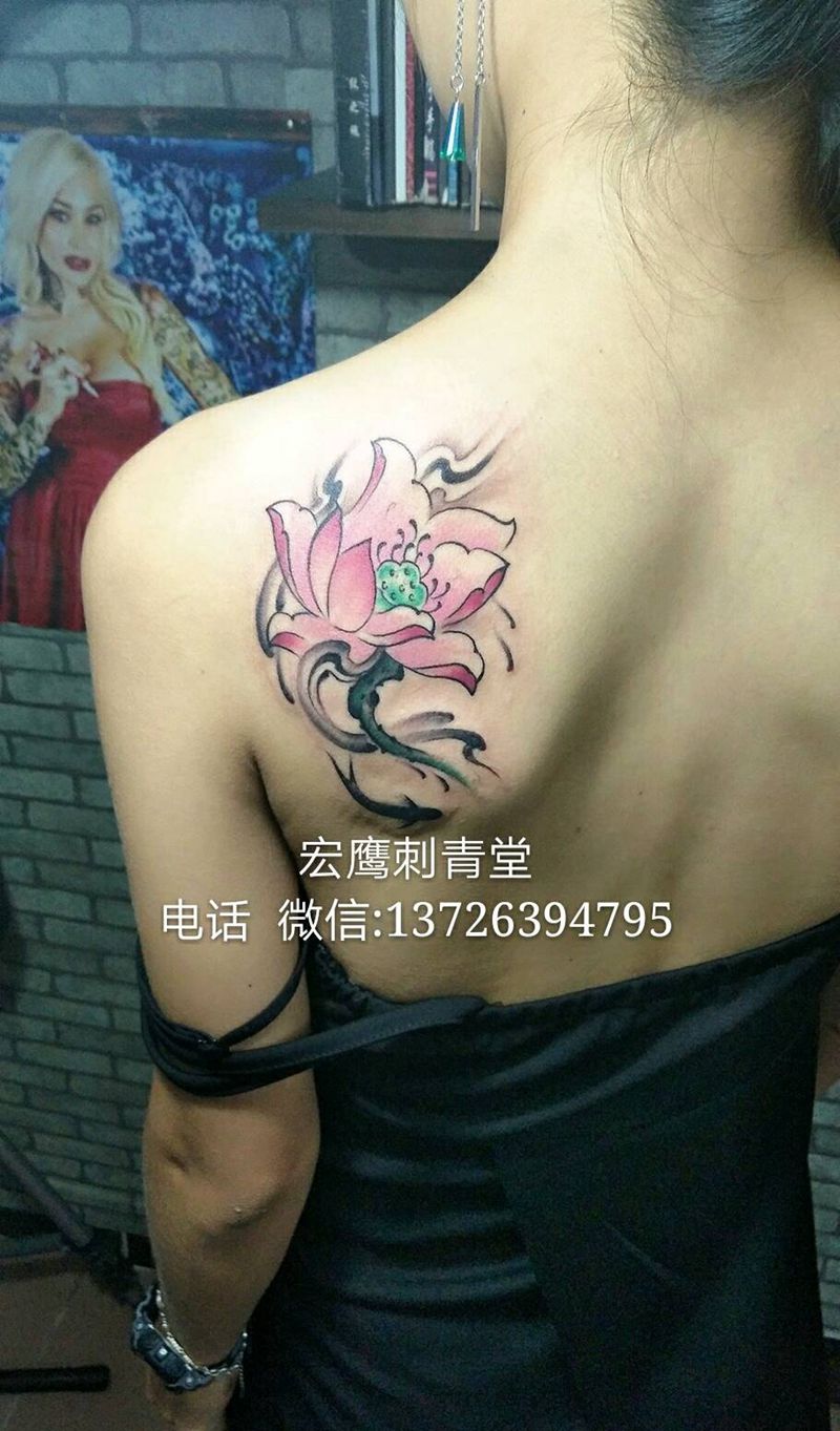 当前位置: 首页 >广东省佛山市纹身店-宏鹰刺青堂纹身图案>水彩莲花纹身图片