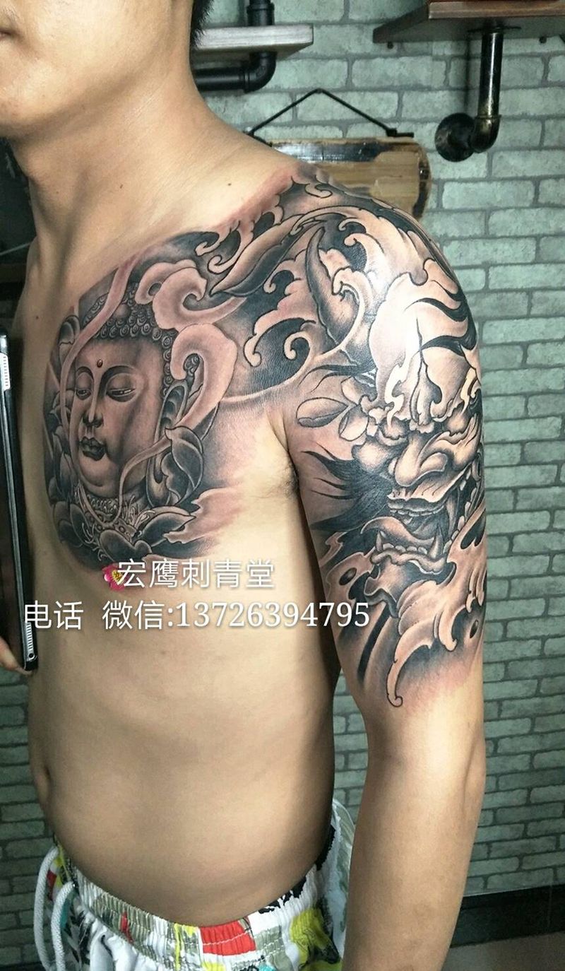 黑灰满背纹身图案