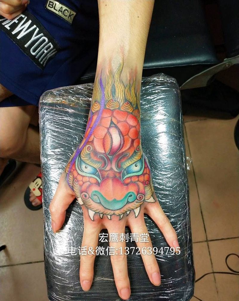 当前位置: 首页 >广东省佛山市纹身店-宏鹰刺青堂纹身图案>狮头纹身图片