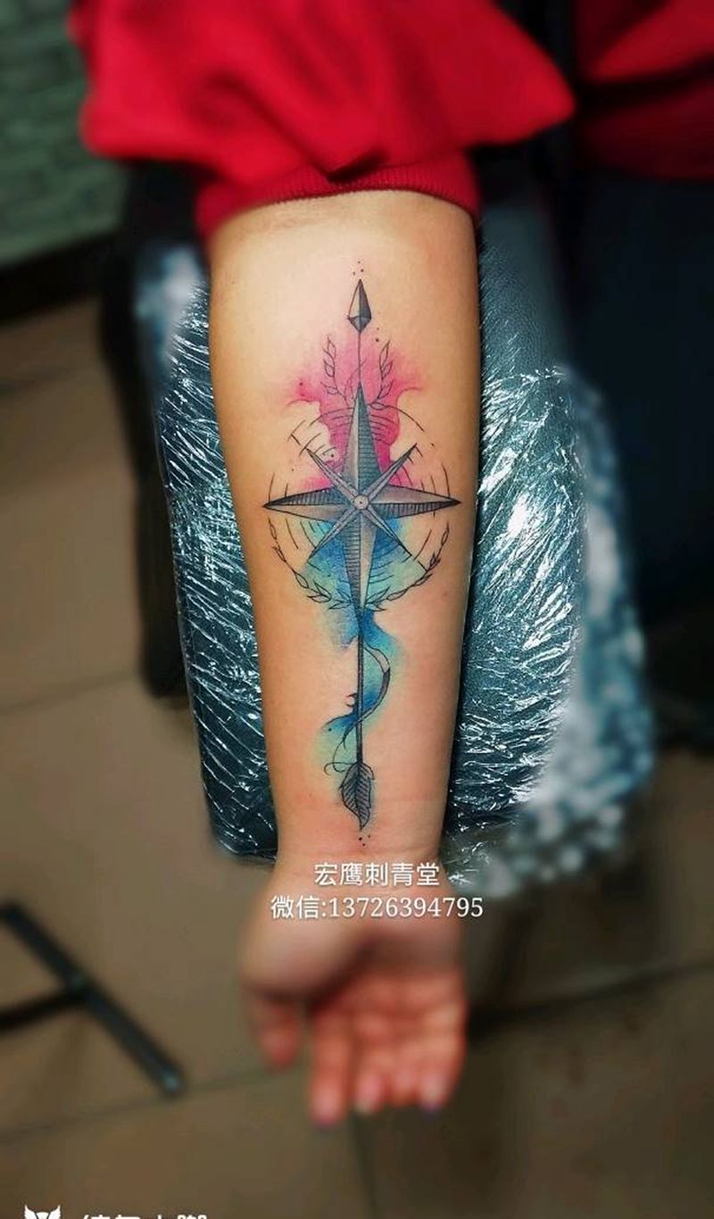 当前位置: 首页 >广东省佛山市纹身店-宏鹰刺青堂纹身图案>水彩指南针纹身图片