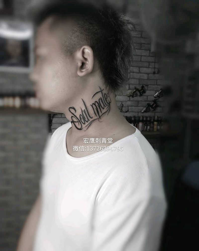 当前位置: 首页 >广东省佛山市纹身店-宏鹰刺青堂纹身图案>个性小英文纹身图片_颈部花体字纹身图案
