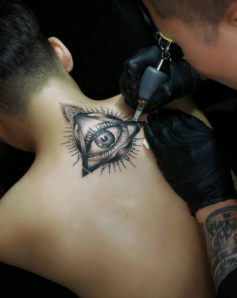 上帝之眼纹身图片_颈部背部新传统点刺纹身图案