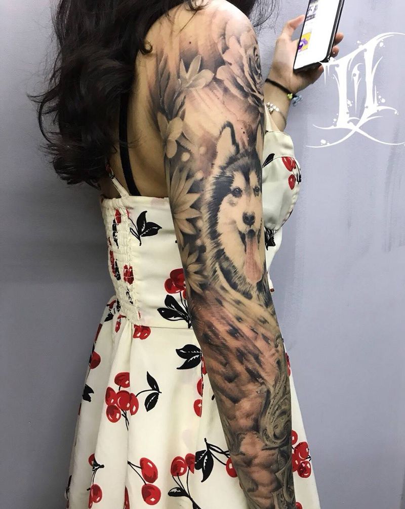 宠物花臂纹身图片_成品手臂写实纹身图案
