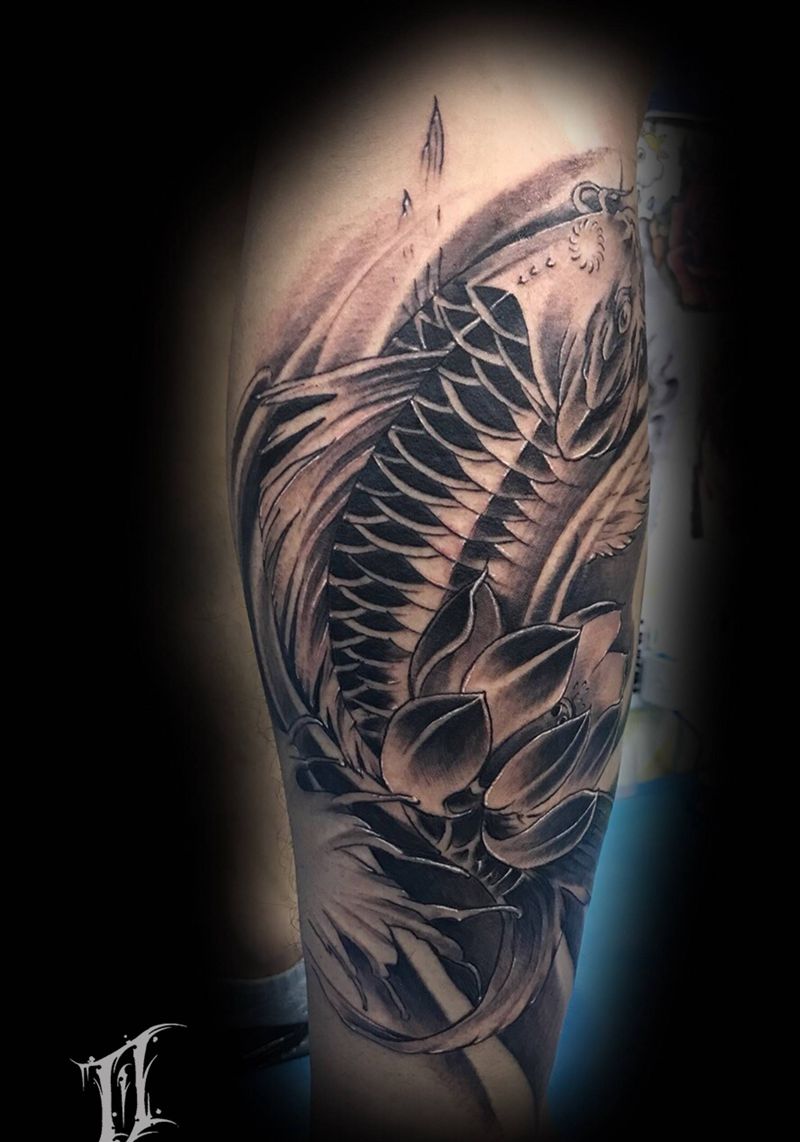 传统鲤鱼纹身图片_脚部鲤鱼纹身图案