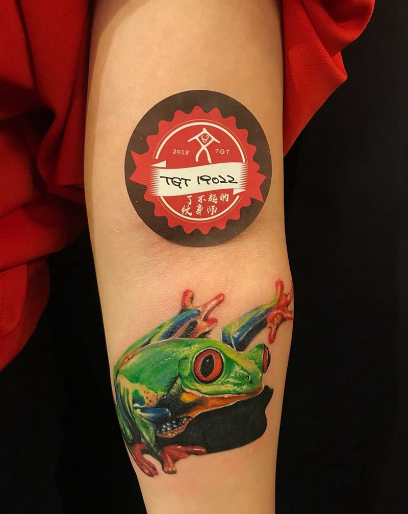 当前位置: 首页 >广东省江门市纹身店-七十七刺青纹身图案>树蛙纹身图片_手部叠彩超写实纹身图案