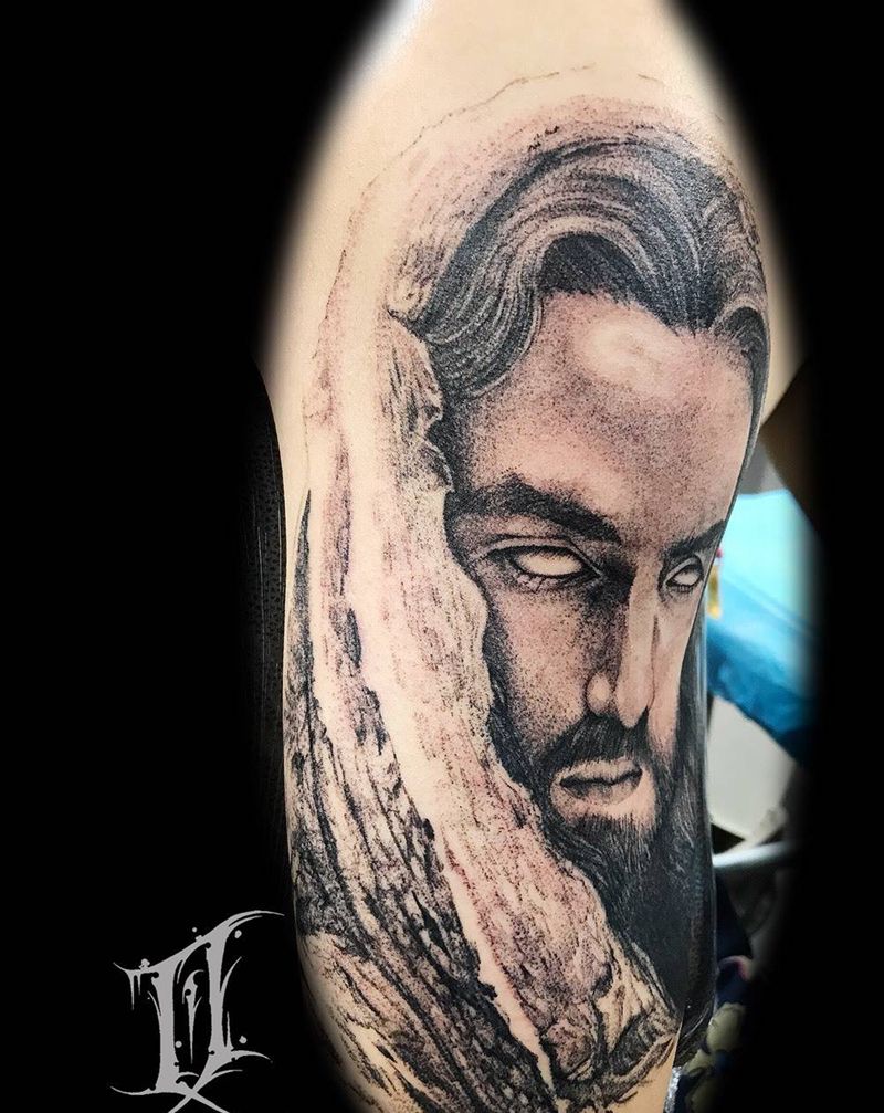 当前位置: 首页 >广东省江门市纹身店-七十七刺青纹身图案>耶稣纹身图片_手臂点刺纹身图案