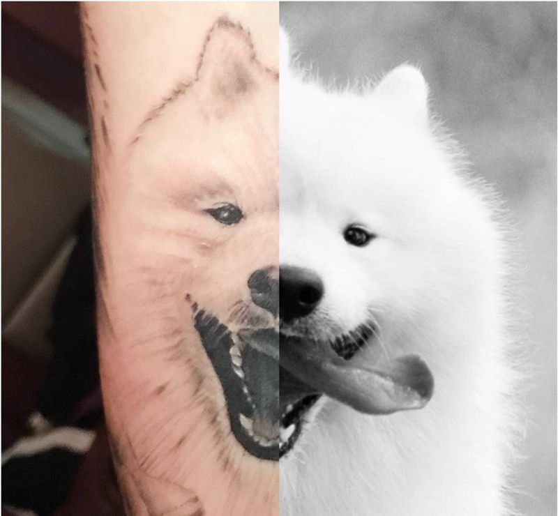 萨摩耶纹身图片_成品手部写实动物纹身图案