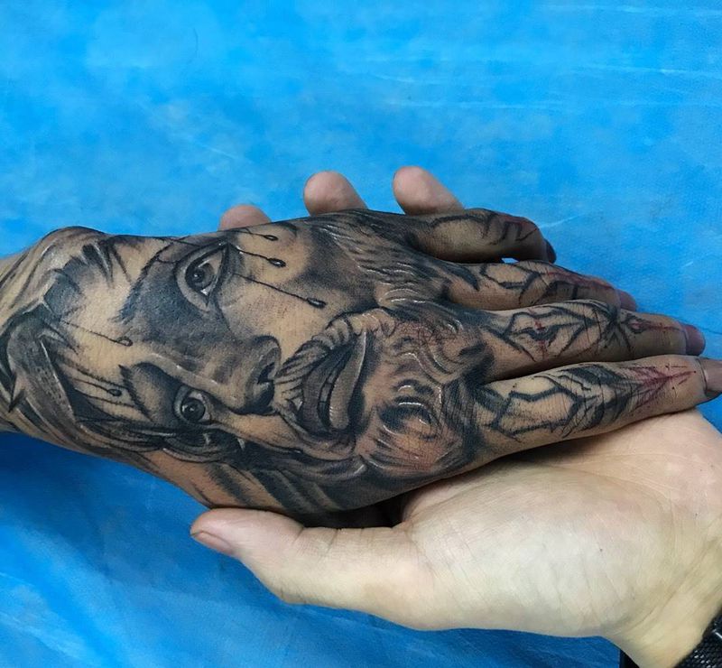 < 上一篇:泼墨 下一篇:波塞冬纹身图片_成品手部写实鬼神纹身图案 >