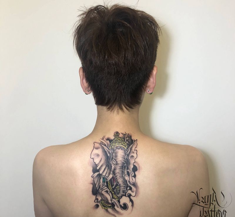 当前位置: 首页 >广东省佛山市纹身店-西尼刺青纹身图案>象神纹身图片_背部新传统象神传统纹身图案