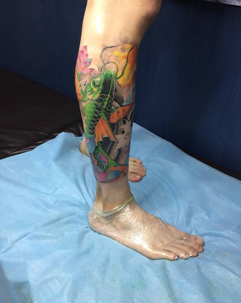 • T网红王老大花腿龙纹身图片_腿部新传统纹身图案