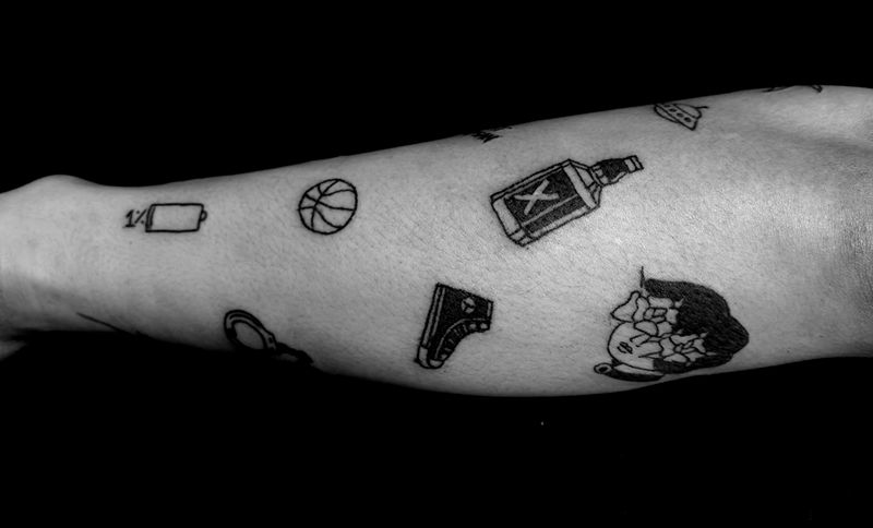 拼图(花臂)纹身图片_手臂新传统点刺小图纹身图案
