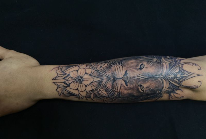 当前位置: 首页 >广东省佛山市纹身店-军刺青纹身总部纹身图案>獅子纹身图片_手臂新传统欧美写实纹身图案