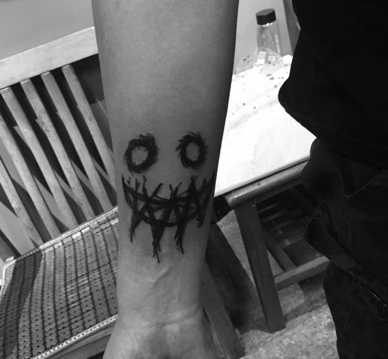 当前位置: 首页 >广东省佛山市纹身店-浩子刺青工作室纹身图案>暗黑笑脸纹身图片_手臂纹身图案