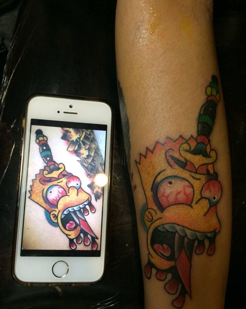 • T包小腿吹火男+阿多福纹身图片_腿部老传统新传统吹火男阿