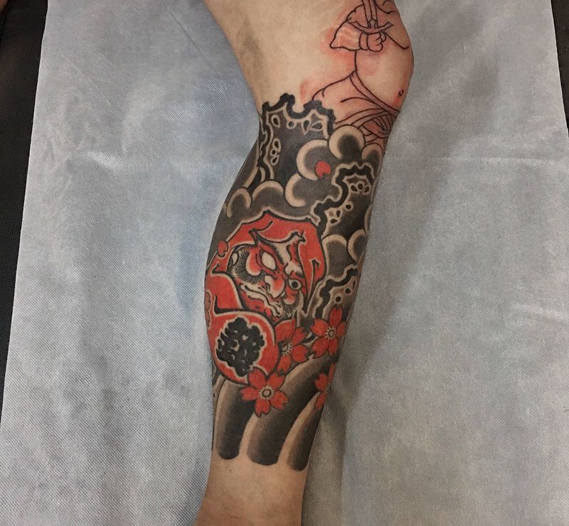 • T网红王老大花腿龙纹身图片_腿部新传统纹身图案