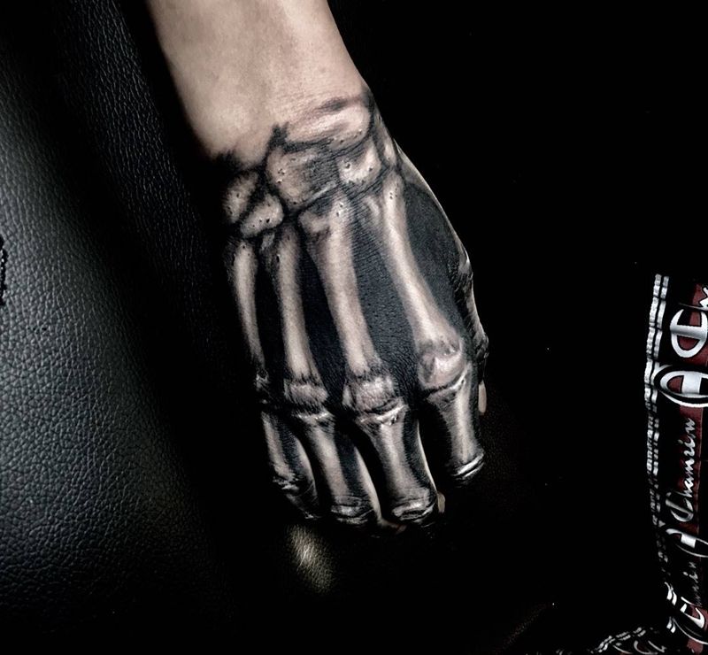• 手背潮流时尚的玫瑰花眼睛纹身图案