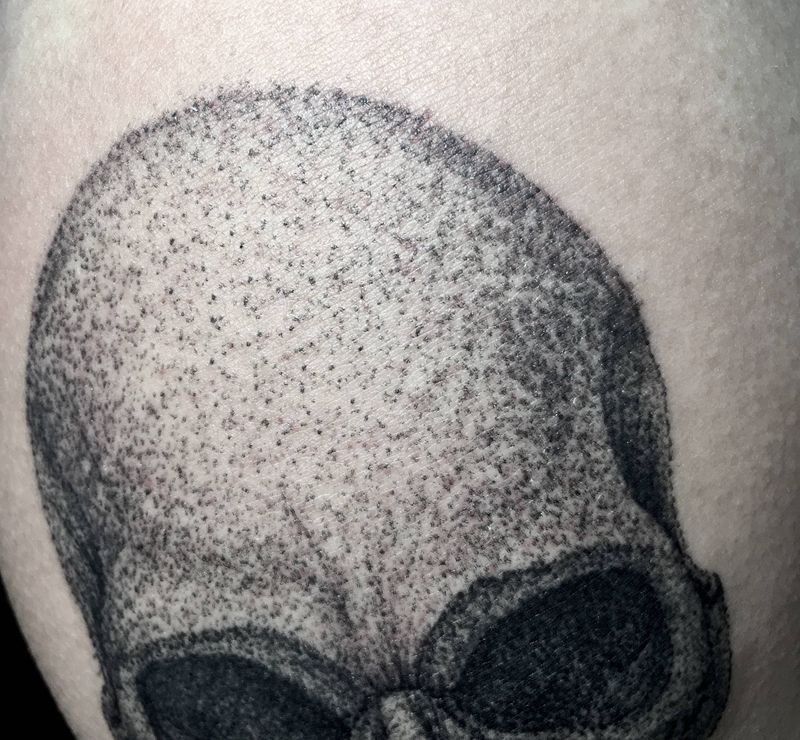 病毒纹身图片_手臂点刺骷髅黑灰纹身图案