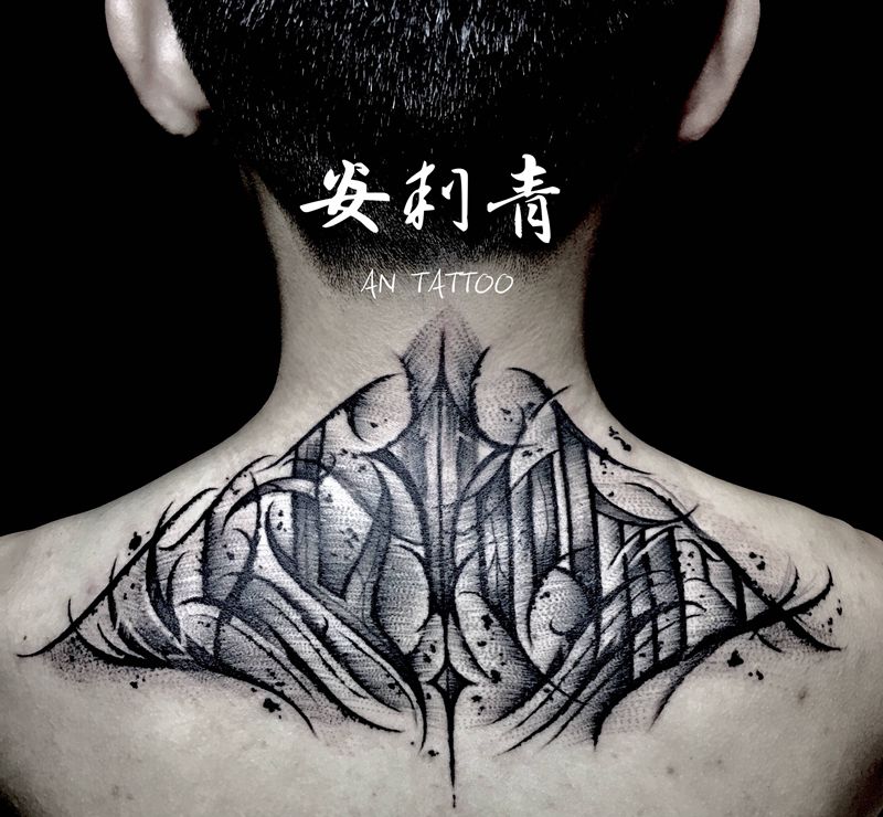 当前位置: 首页 >广东省江门市纹身店-安刺青纹身图案>自律纹身图片_背部花体字暗黑纹身图案