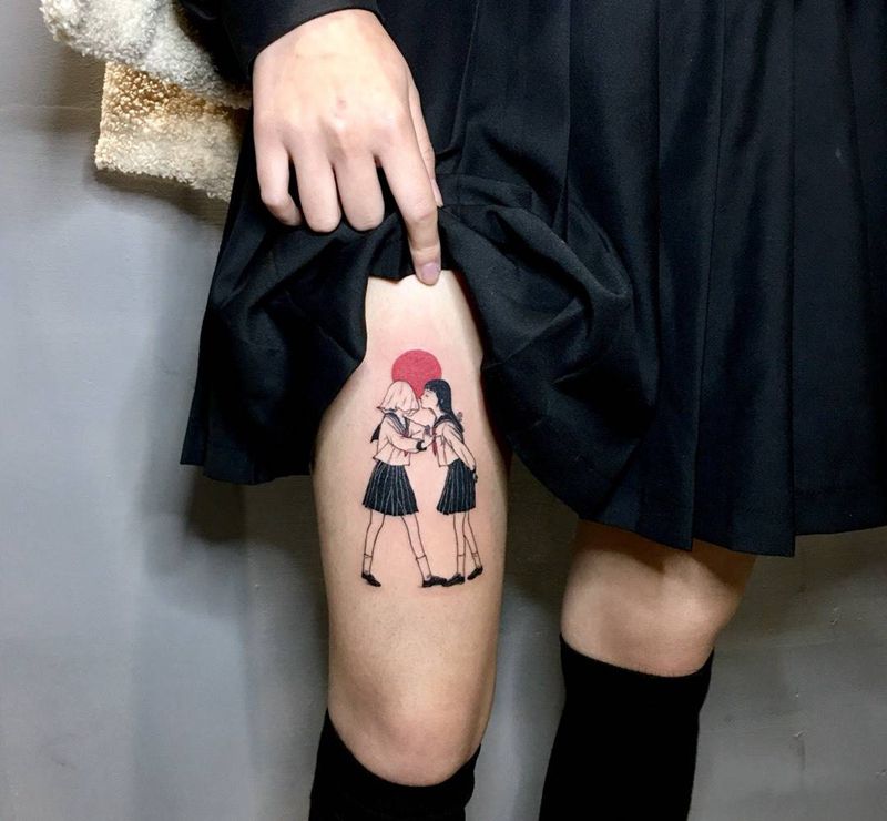 洛丽塔纹身图片_腿部动漫大腿制服纹身图案