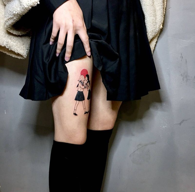 洛丽塔纹身图片_腿部动漫大腿制服纹身图案