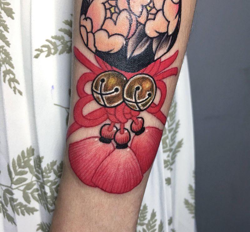 无名纹身图片_手臂手部老传统新传统猫铃铛花纹身图案