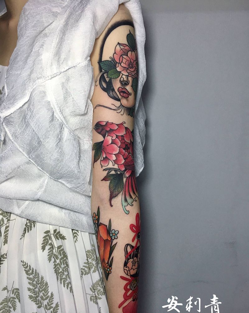 拼接纹身图片_手臂手部Old SchoolNew School清新简约彩色纹身图案