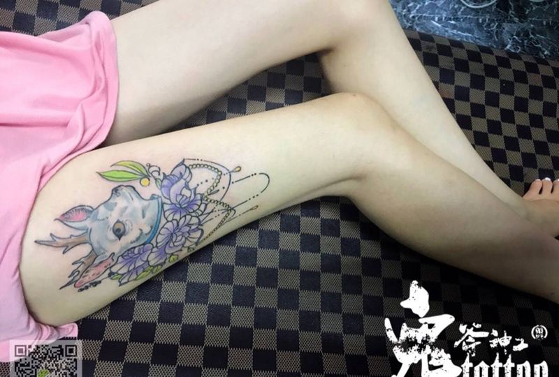 当前位置: 首页 >广东省江门市纹身店-鬼斧神工纹身纹身图案>小山羊纹身图片_成品腿部欧美动物纹身图案