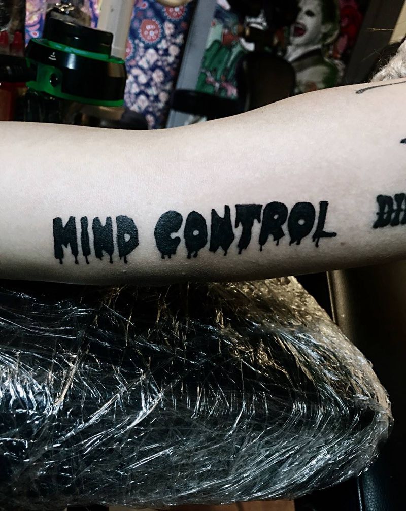 GD同款 自我控制纹身图片_手臂花体字纹身图案