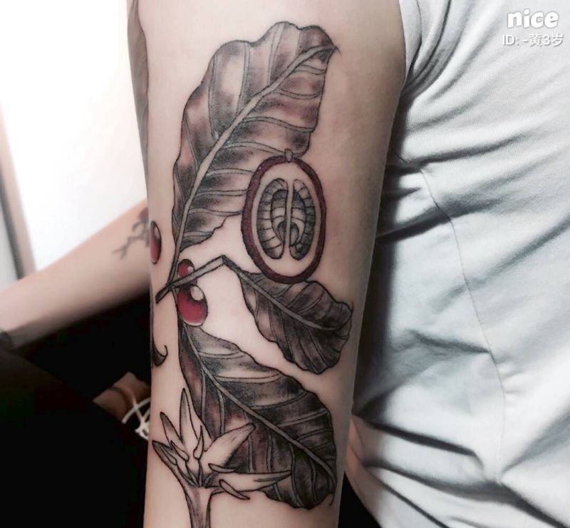 咖啡叶与果纹身图片_手臂纹身图案