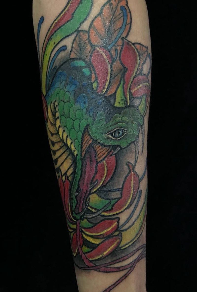 • T网红王老大花腿龙纹身图片_腿部新传统纹身图案