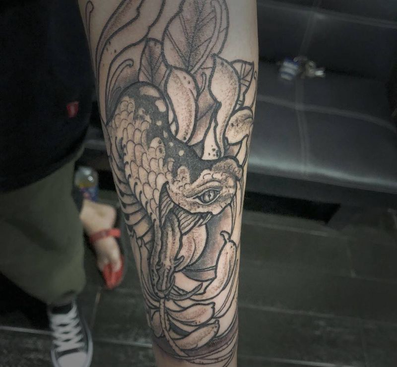 当前位置: 首页 >广东省佛山市纹身店-不會刺青處纹身图案>小臂蛇与菊纹身图片