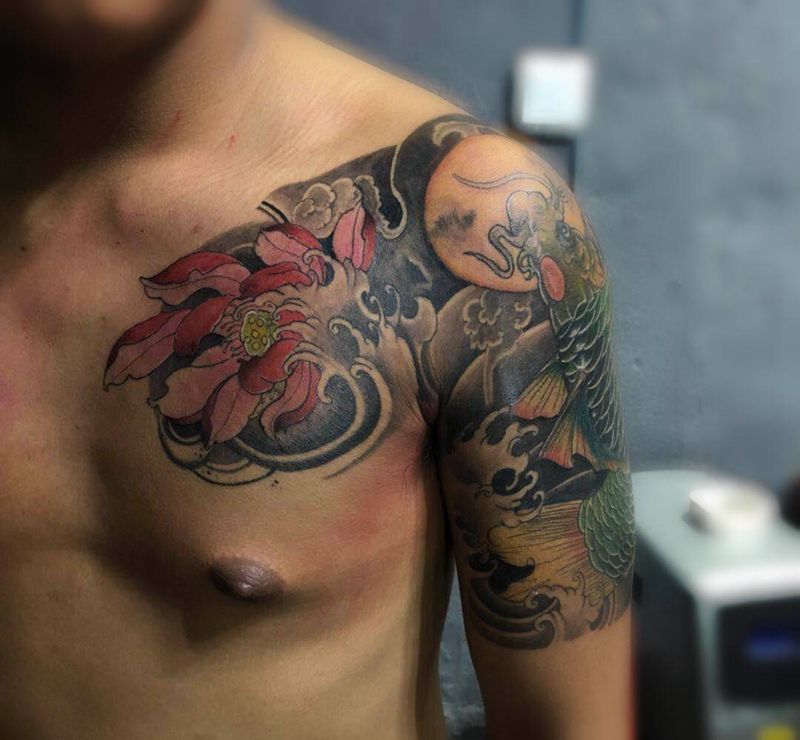 • 女性大花胸纹身_43张霸气漂亮的女性大花胸纹身图案作品