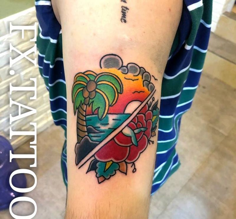 当前位置: 首页 >广东省江门市纹身店-风行者刺青纹身图案>New school椰树纹身图片_手臂New School纹身图案