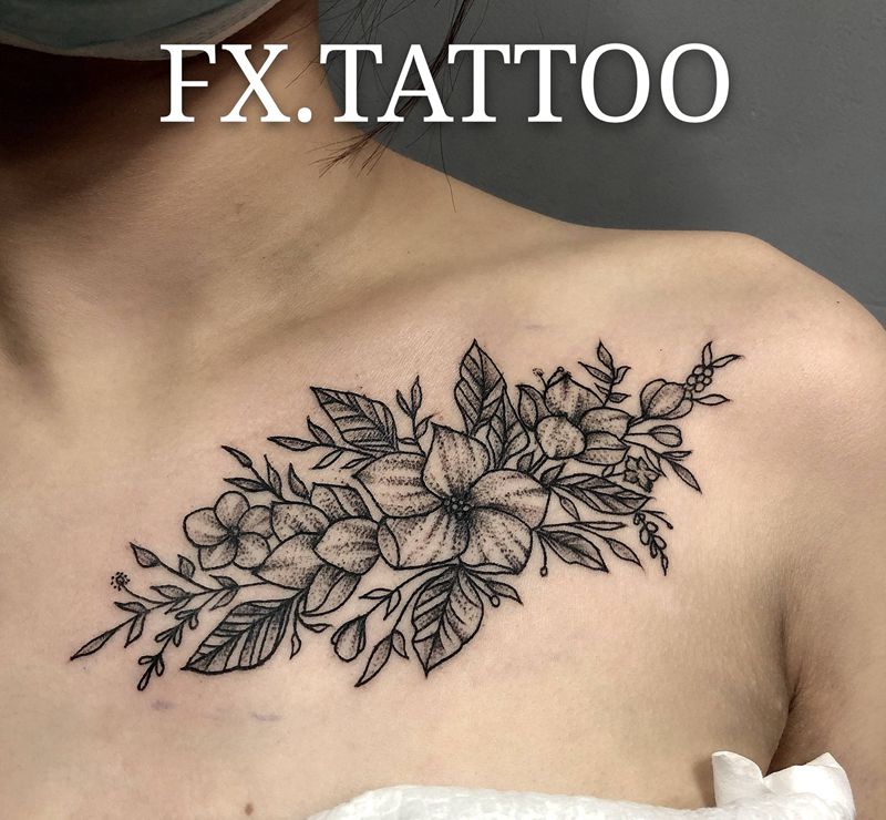 • 女性大花胸纹身_43张霸气漂亮的女性大花胸纹身图案作品