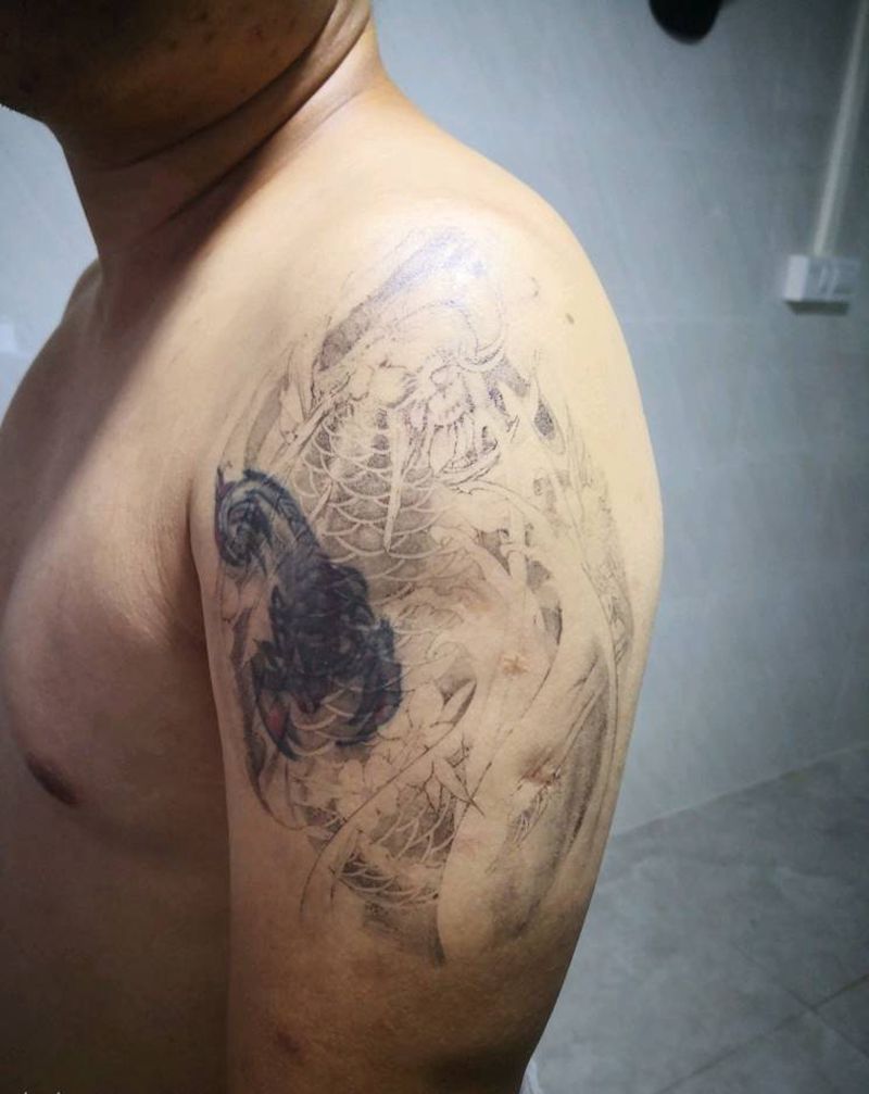 遮盖锦鲤纹身图片_手臂老传统纹身图案