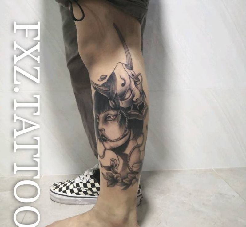 当前位置: 首页 >广东省江门市纹身店-风行者刺青纹身图案>新式艺伎纹身图片_腿部纹身图案