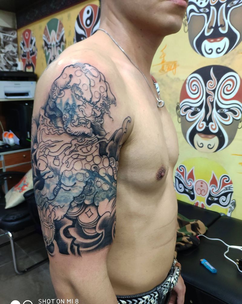 当前位置: 首页 >广东省佛山市纹身店-乐意纹身纹身图案>唐狮遮盖两个旧纹身纹身图片_肩部手部新传统纹身图案