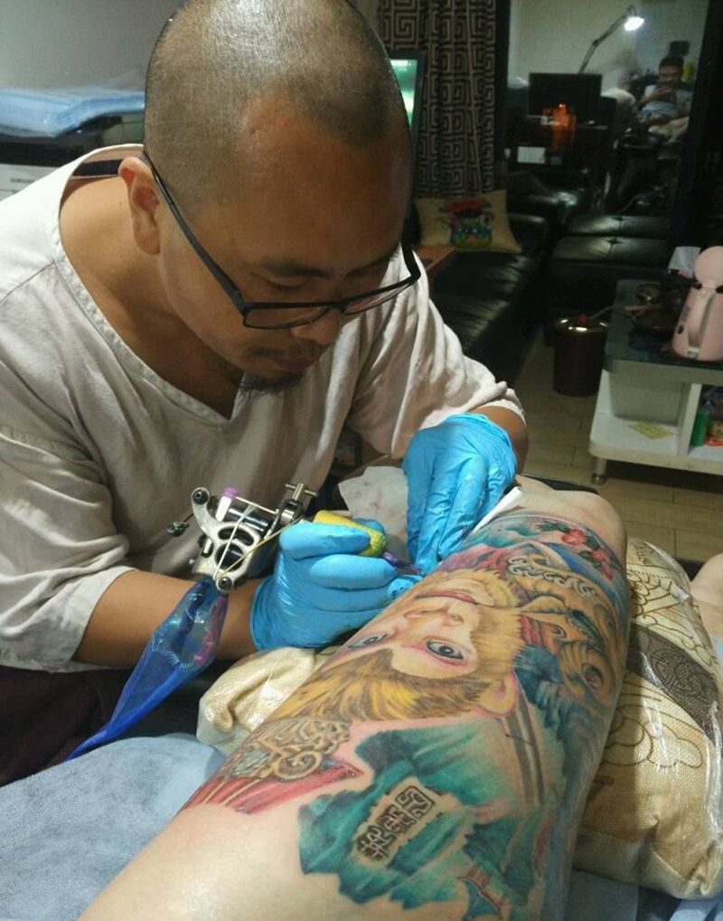 当前位置: 首页 >广东省佛山市纹身店-乐意纹身纹身图案>经典美猴王纹身图片_腿部脚部传统肖像国画人物静物宗教原创成品纹身图案