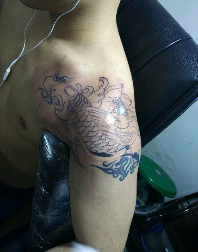 富贵锦鲤纹身图片_肩部胸部背部手臂传统习俗动物纹身图案
