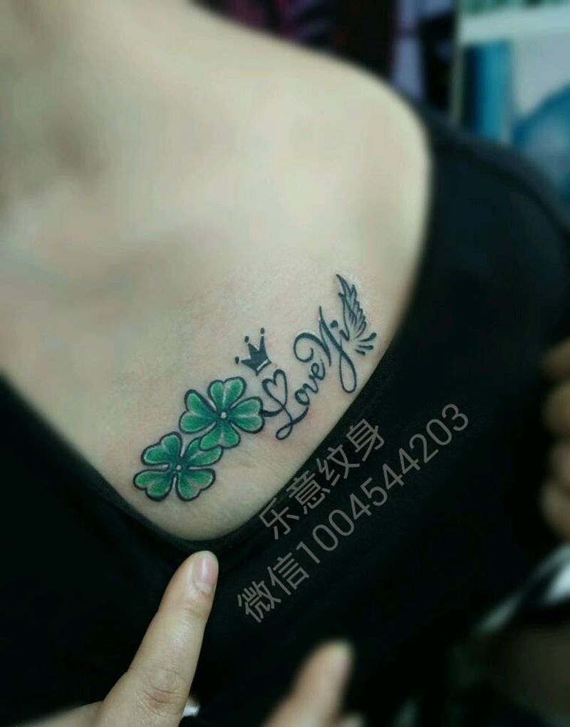 当前位置: 首页 >广东省佛山市纹身店-乐意纹身纹身图案>小清新四叶草纹身图片_胸部清新字符植物图腾纹身图案