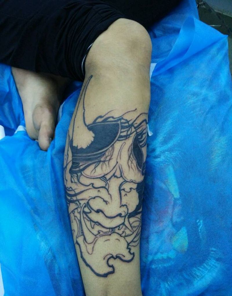 般若纹身图片_腿部脚部传统人物鬼神宗教纹身图案