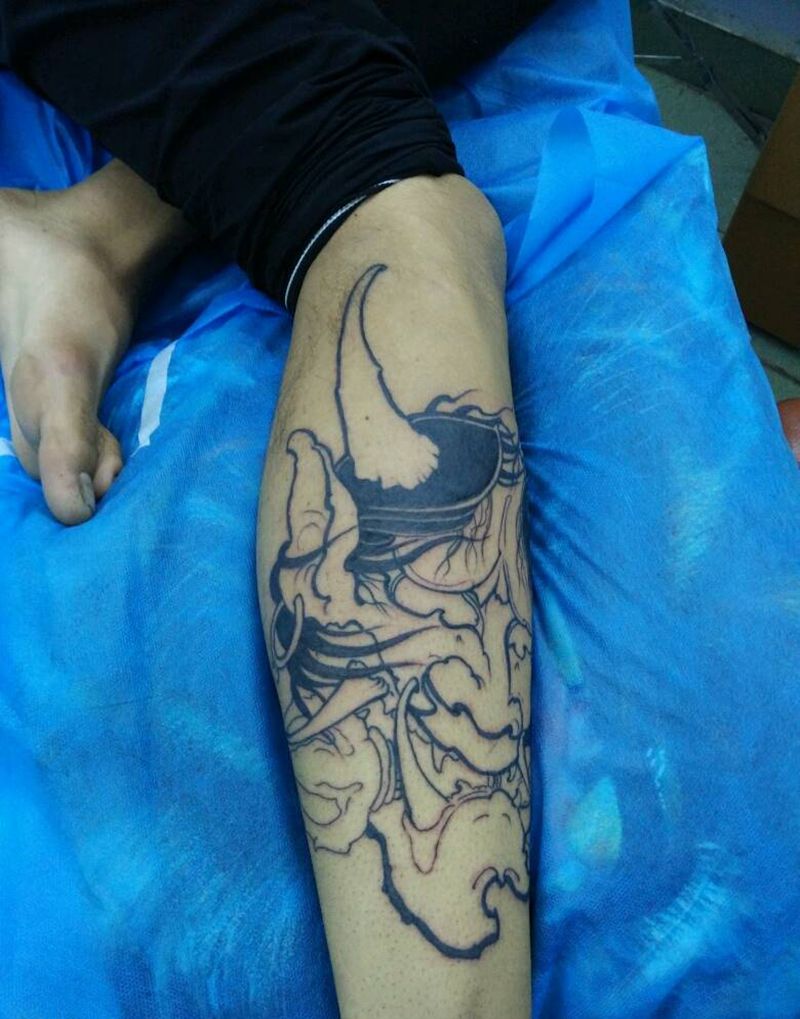 般若纹身图片_腿部脚部传统人物鬼神宗教纹身图案
