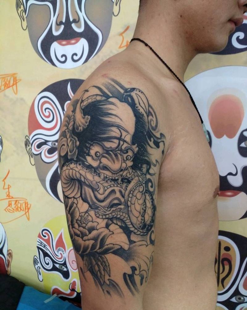 • 纹身吧推荐的披肩图腾半胛纹身图案作品展示